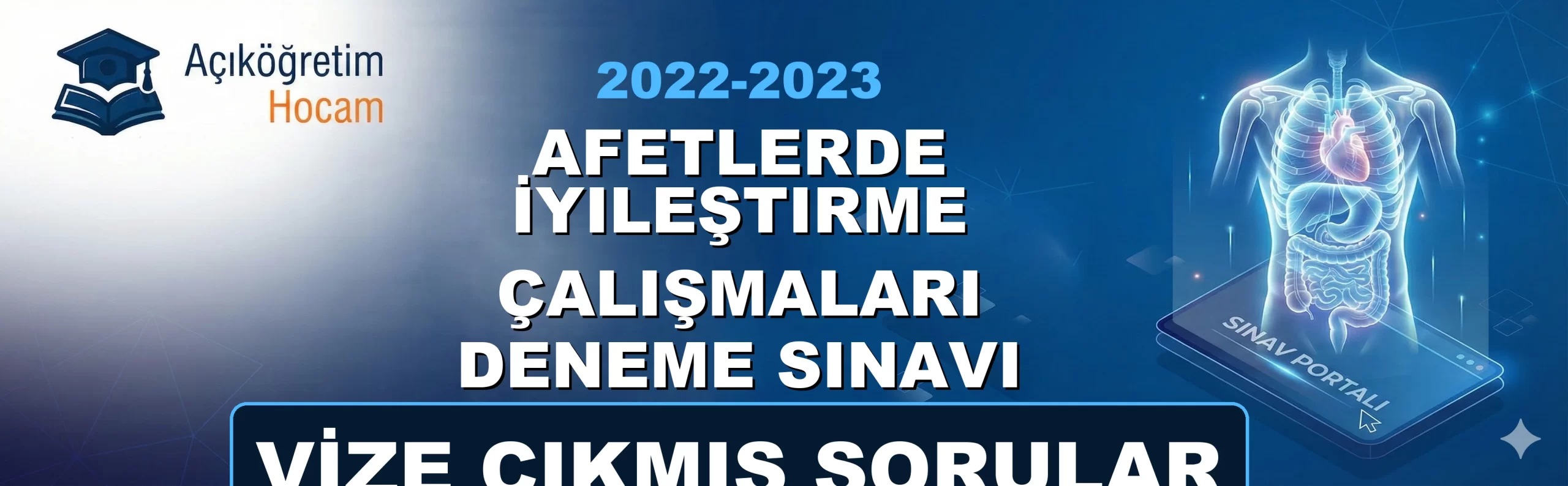 📌 Sınav Öncesi Kısa BilgiDeğerli Acil Yardım Ve Afet Yönetimi bölümü öğrencileri; bu sayfada Afetlerde İyileştirme Çalışmaları Deneme Sınavı 2022-2023 Vize Çıkmış Soruları dersine ait geçmiş yıllarda çıkmış soruları ve pratik deneme testlerini sizin için bir araya getirdik. Sınavda zamanı iyi yönetmek ve soru tiplerine tam olarak aşina olmak için aşağıdaki özel test motorumuzu kullanabilirsiniz. İster "Çalışma Modu" ile anında cevapları görün, ister "Sınav Modu" ile kendinizi zamana karşı test edin. Şimdiden sınavlarınızda başarılar dileriz!