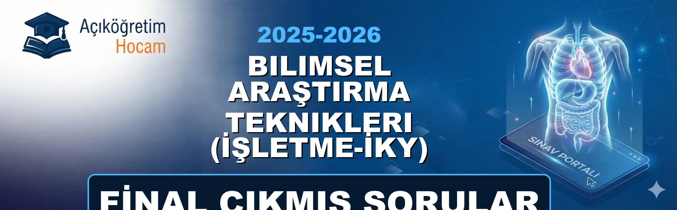 📌 Sınav Öncesi Kısa BilgiDeğerli AUZEF bölümü öğrencileri; bu sayfada Bilimsel Araştırma Teknikleri (İşletme-İKY) 2025-2026 Final Çıkmış Soruları dersine ait geçmiş yıllarda çıkmış soruları ve pratik deneme testlerini sizin için bir araya getirdik. Sınavda zamanı iyi yönetmek ve soru tiplerine tam olarak aşina olmak için aşağıdaki özel test motorumuzu kullanabilirsiniz. İster "Çalışma Modu" ile anında cevapları görün, ister "Sınav Modu" ile kendinizi zamana karşı test edin. Şimdiden sınavlarınızda başarılar dileriz!