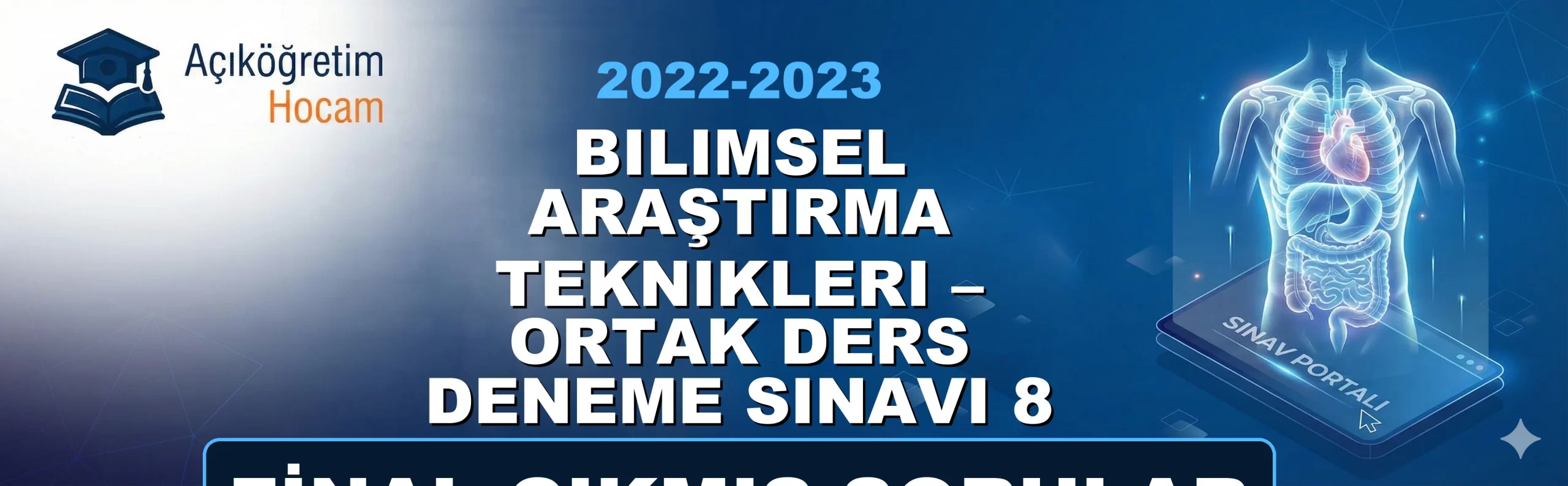📌 Sınav Öncesi Kısa BilgiDeğerli AUZEF bölümü öğrencileri; bu sayfada Bilimsel Araştırma Teknikleri – Ortak Ders Deneme Sınavı 8 2022-2023 Final Çıkmış Soruları dersine ait geçmiş yıllarda çıkmış soruları ve pratik deneme testlerini sizin için bir araya getirdik. Sınavda zamanı iyi yönetmek ve soru tiplerine tam olarak aşina olmak için aşağıdaki özel test motorumuzu kullanabilirsiniz. İster "Çalışma Modu" ile anında cevapları görün, ister "Sınav Modu" ile kendinizi zamana karşı test edin. Şimdiden sınavlarınızda başarılar dileriz!