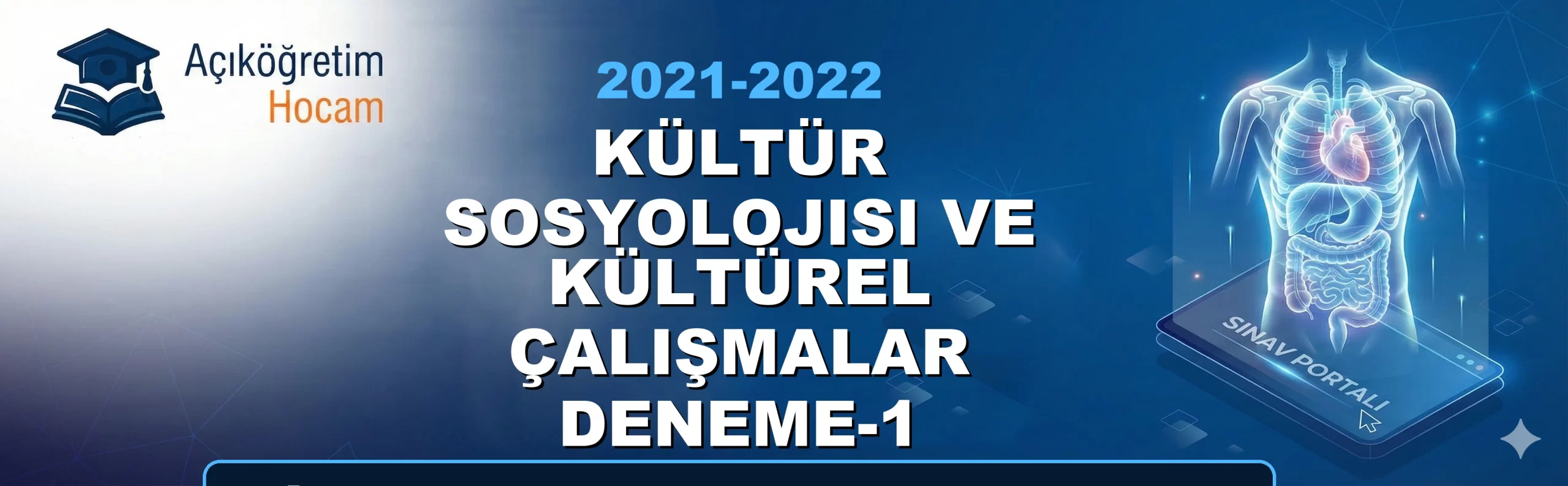 📌 Sınav Öncesi Kısa BilgiDeğerli AUZEF bölümü öğrencileri; bu sayfada Kültür Sosyolojisi ve Kültürel Çalışmalar Deneme-1 2021-2022 Final Çıkmış Soruları dersine ait geçmiş yıllarda çıkmış soruları ve pratik deneme testlerini sizin için bir araya getirdik. Sınavda zamanı iyi yönetmek ve soru tiplerine tam olarak aşina olmak için aşağıdaki özel test motorumuzu kullanabilirsiniz. İster "Çalışma Modu" ile anında cevapları görün, ister "Sınav Modu" ile kendinizi zamana karşı test edin. Şimdiden sınavlarınızda başarılar dileriz!