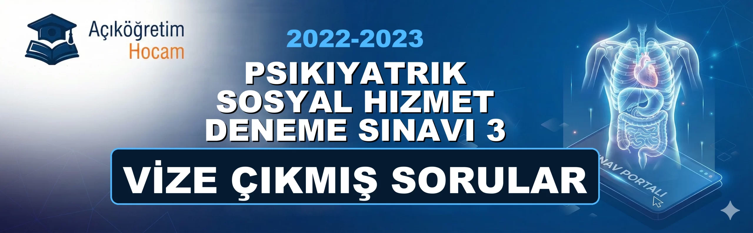 📌 Sınav Öncesi Kısa BilgiDeğerli AUZEF bölümü öğrencileri; bu sayfada Psikiyatrik Sosyal Hizmet Deneme Sınavı 3 2022-2023 Vize Çıkmış Soruları dersine ait geçmiş yıllarda çıkmış soruları ve pratik deneme testlerini sizin için bir araya getirdik. Sınavda zamanı iyi yönetmek ve soru tiplerine tam olarak aşina olmak için aşağıdaki özel test motorumuzu kullanabilirsiniz. İster "Çalışma Modu" ile anında cevapları görün, ister "Sınav Modu" ile kendinizi zamana karşı test edin. Şimdiden sınavlarınızda başarılar dileriz!