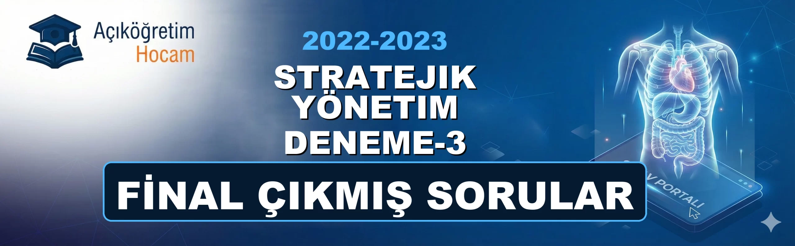 📌 Sınav Öncesi Kısa BilgiDeğerli AUZEF bölümü öğrencileri; bu sayfada Stratejik Yönetim Deneme-3 2022-2023 Final Çıkmış Soruları dersine ait geçmiş yıllarda çıkmış soruları ve pratik deneme testlerini sizin için bir araya getirdik. Sınavda zamanı iyi yönetmek ve soru tiplerine tam olarak aşina olmak için aşağıdaki özel test motorumuzu kullanabilirsiniz. İster "Çalışma Modu" ile anında cevapları görün, ister "Sınav Modu" ile kendinizi zamana karşı test edin. Şimdiden sınavlarınızda başarılar dileriz!
