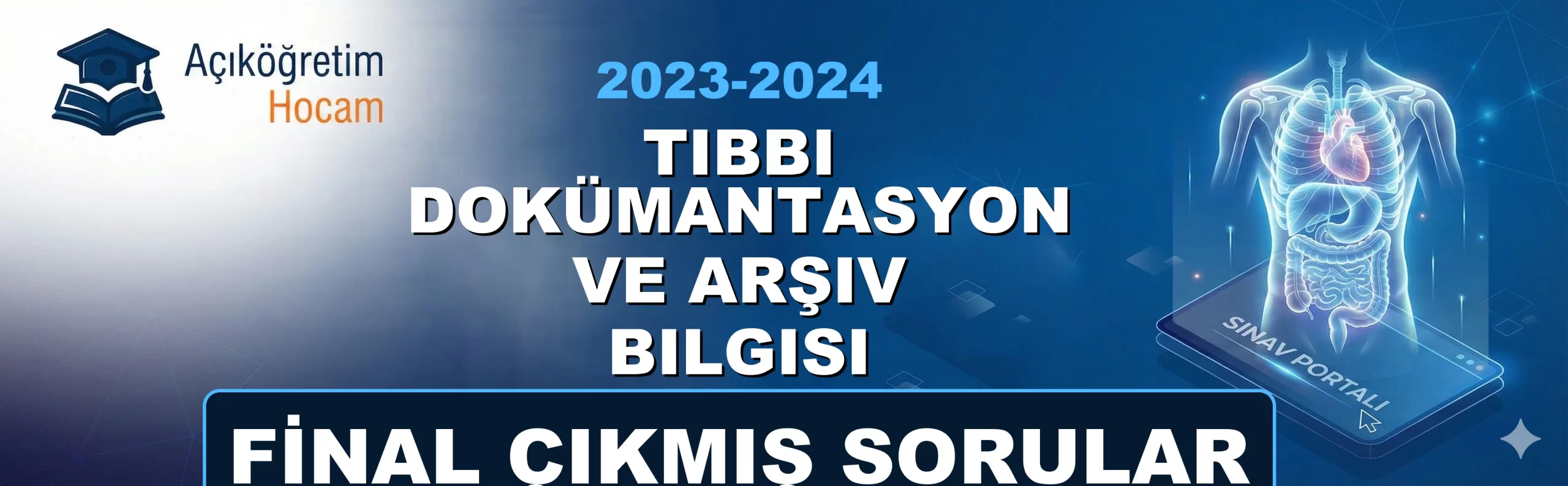 📌 Sınav Öncesi Kısa BilgiDeğerli AUZEF bölümü öğrencileri; bu sayfada Tıbbi Dokümantasyon ve Arşiv Bilgisi 2023-2024 Final Çıkmış Soruları dersine ait geçmiş yıllarda çıkmış soruları ve pratik deneme testlerini sizin için bir araya getirdik. Sınavda zamanı iyi yönetmek ve soru tiplerine tam olarak aşina olmak için aşağıdaki özel test motorumuzu kullanabilirsiniz. İster "Çalışma Modu" ile anında cevapları görün, ister "Sınav Modu" ile kendinizi zamana karşı test edin. Şimdiden sınavlarınızda başarılar dileriz!